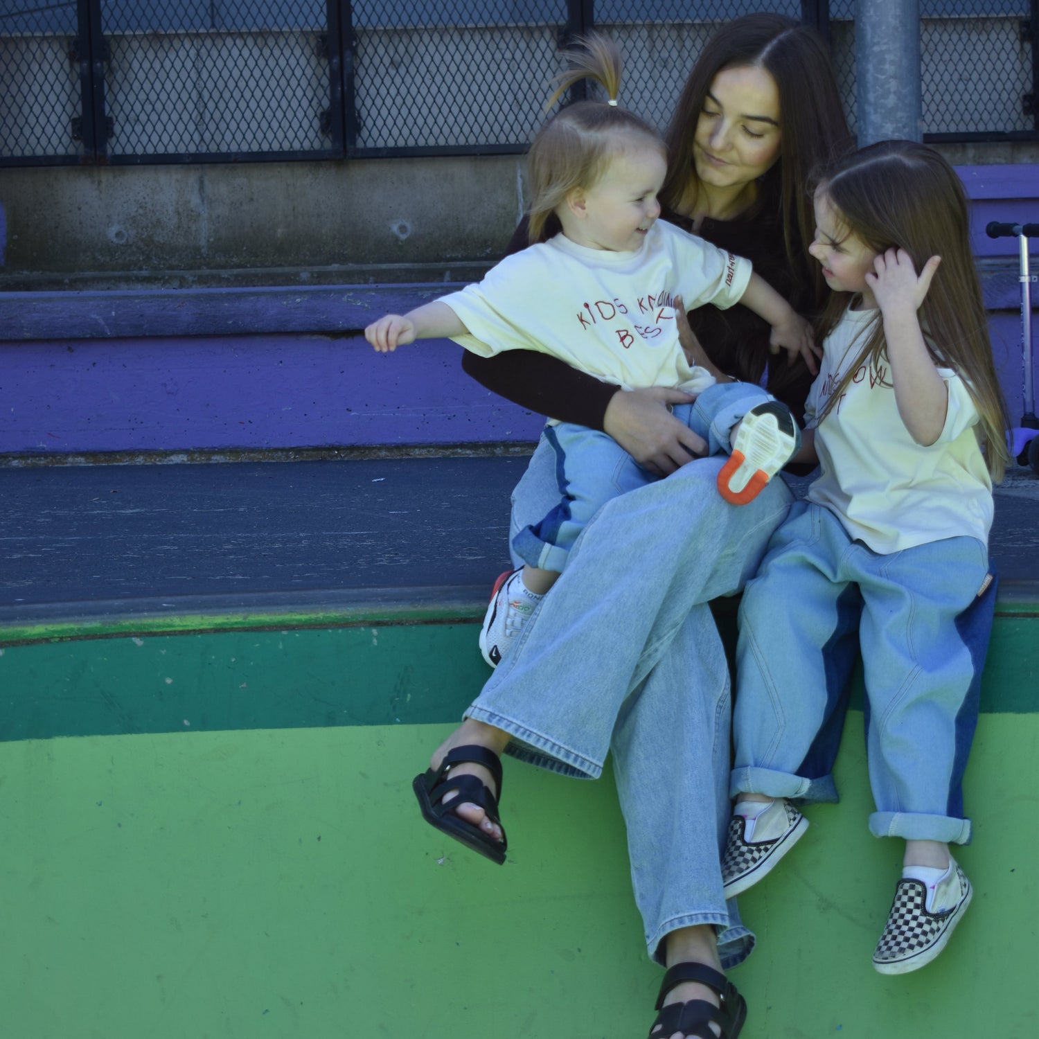Our story started with Harley’s handwritten “Kids Know Best” tee and her little love heart, now stitched onto every piece as a symbol of the love behind our brand.